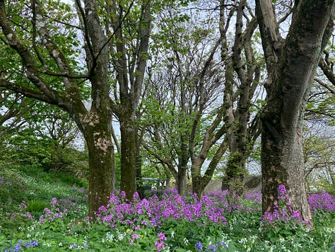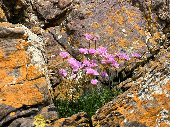 The Isle of Iona is a 10-minute ferry-ride from Mull and is a world unto itself. Again, this journey, a thousand worlds opening up with each moment. We walked all day today, this last day of April, and we greeted with some truly spectacular weather, views, energies, flowers, and people. We even bumped into the royal couple (we were stopped a short walk away from where they were being photographed), Prince William and Princess Katherine (though in Scotland they are known as the Duke and Duchess of Rothesay), visiting on their 14th wedding anniversary. The day was a truly glorious and magical.